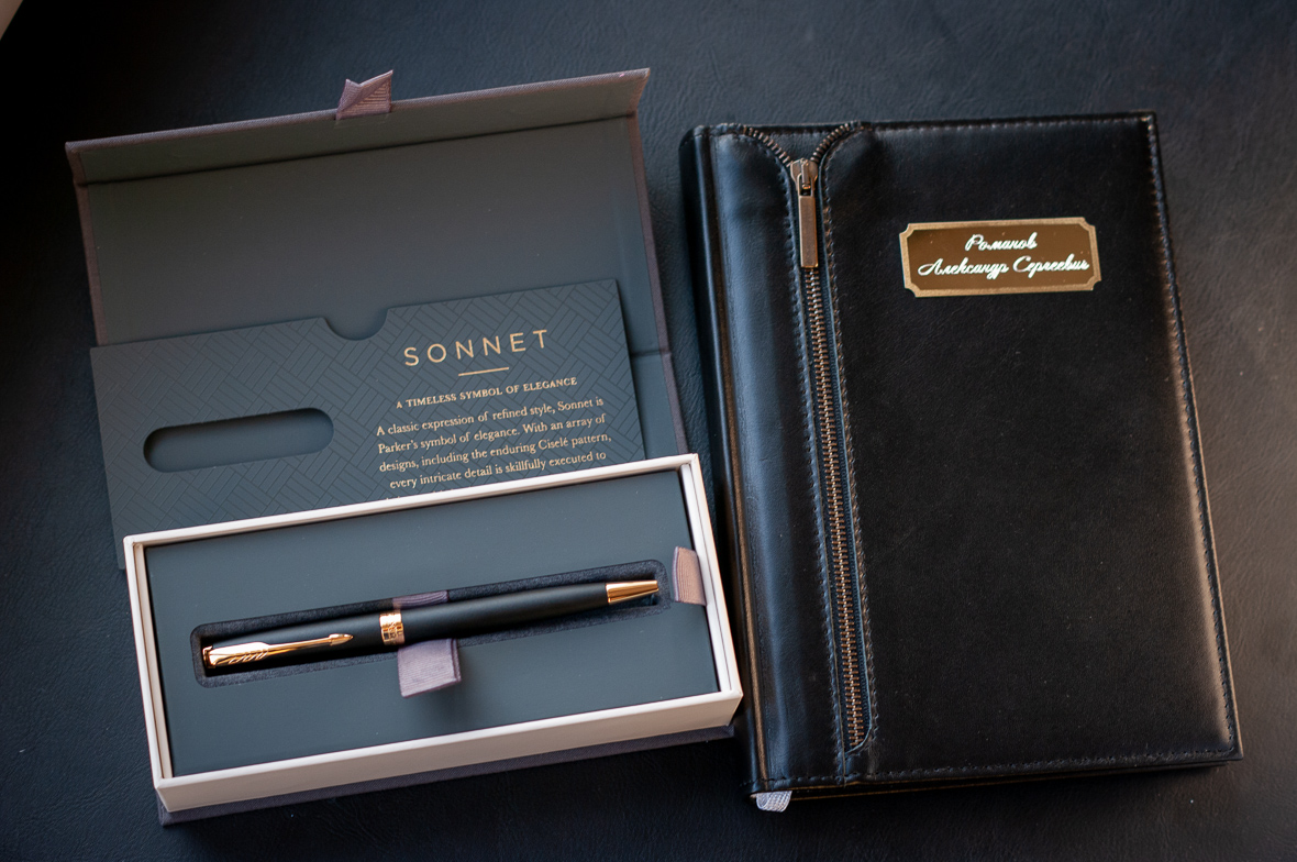 Подарочный набор VIP Ежедневник и ручка Parker Sonnet Matte Black GT от официального дилера Parker в Комсомольске-на-Амуре. Вы можете дополнительно заказать гравировку, которая подчеркнет Вашу оригинальность и придаст памятность статусному подарку. Все ручки Паркер поставляются в фирменном футляре.
