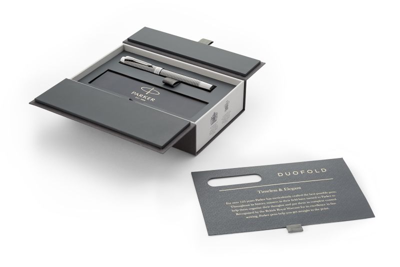 Ручка роллер Parker Duofold Prestige Ruthenium Chiselled CT от официального дилера Parker в Комсомольске-на-Амуре. Вы можете дополнительно заказать гравировку, которая подчеркнет Вашу оригинальность и придаст памятность статусному подарку. Все ручки Паркер поставляются в фирменном футляре.